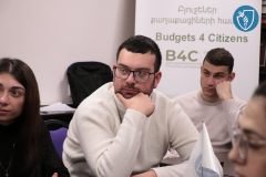 Մարտի 4-ին տեղի ունեցան հերթական դասընթացները երիտասարդ մասնագետների և ՔՀԿ/ԶԼՄ ներկայացուցիչների հետ՝ պետական և համայնքային մակարդակում մասնակցային բյուջետավորման և դրա իրավական հիմքերի վերաբերյալ։ Դասընթացներն իրականացվել է «Բյուջեներ քաղաքացիների համար» ծրագրի շրջանակներում մեկնարկած երիտասարդ մասնագետների բյուջետային գիտելիքների փոխանցմանը և ՔՀԿ/ԶԼՄ-ների բյուջետային կարողությունների զարգացմանն ուղղված ուսումնական ծրագրերի երկրորդ հոսքի մասնակիցների մասնակցությամբ։