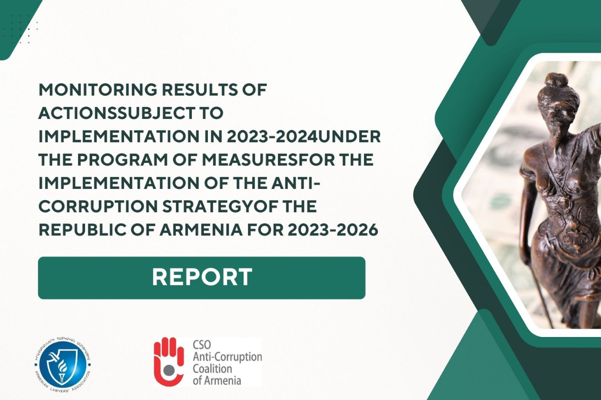 The “Armenian Lawyers’ Association” NGO (ALA), in cooperation with the CSO Anti-Corruption Coalition of Armenia, has conducted public monitoring of the annual implementation of the Anti-Corruption Strategy of the Republic of Armenia and its Implementation Program for 2023-2026 during the years 2023-2024.